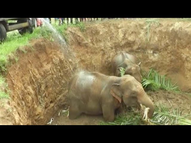 При помощи экскаватора спасатели вырыли проход, по которому слоны поднялись наверх. Оказавшись на свободе, животные сразу же убежали в джунгли. Освобождение слонов толпа встретила аплодисментами.