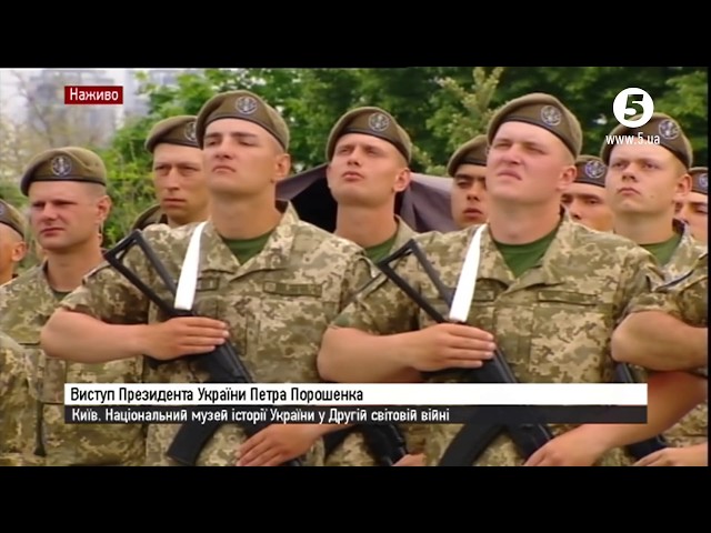 В 09:30 Порошенко начал принимать военную присягу у бойцов 101-й отдельной бригады охраны Генерального штаба ВСУ. Далее последует торжественный марш.