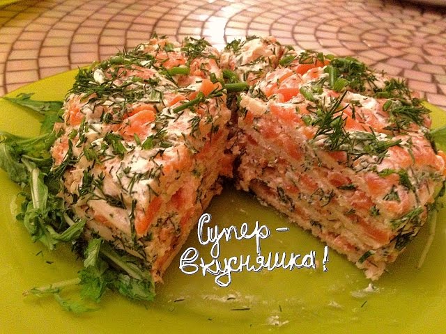 Торт из слабосоленой сёмги, творожного крема и блинов
