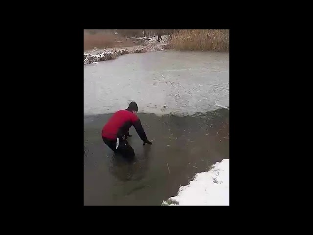Водолазы, стоя по пояс в ледяной воде, руками ломали лед, толщина которого была уже сантиметров пять, расчищали полынью и дорожку для свободного передвижения уточек – всего расчистили около 200 кв. метров.