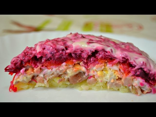 Что подать на новогодний стол 2019? Тут явно не обойтись без классических салатов, к которым многие привыкли с детства. Для любителей рыбного праздник будет не в радость без "Селедки под шубой".