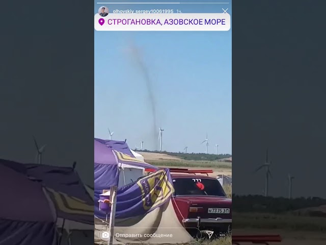 12 августа смерч напугал отдыхавших в Приморском районе Запорожской области. Люди, который отдыхали дикарями в селе Строгановка, не на шутку испугались. Хотя торнадо был далеко от них и носился в районе Ботиевской ветроэлектростанции. Правда, высота его была впечатляющей - столб был гораздо выше ветряков.