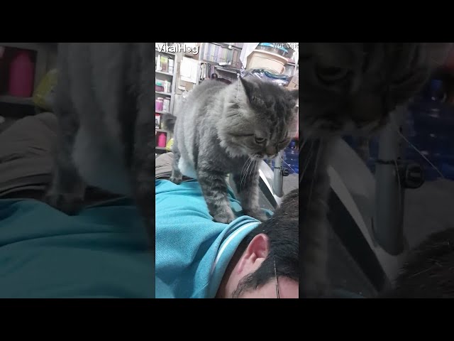 - Эта кошка любит массировать спину своего владельца, - сказано в комментарии к видео.