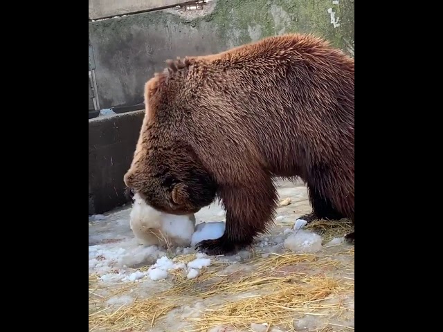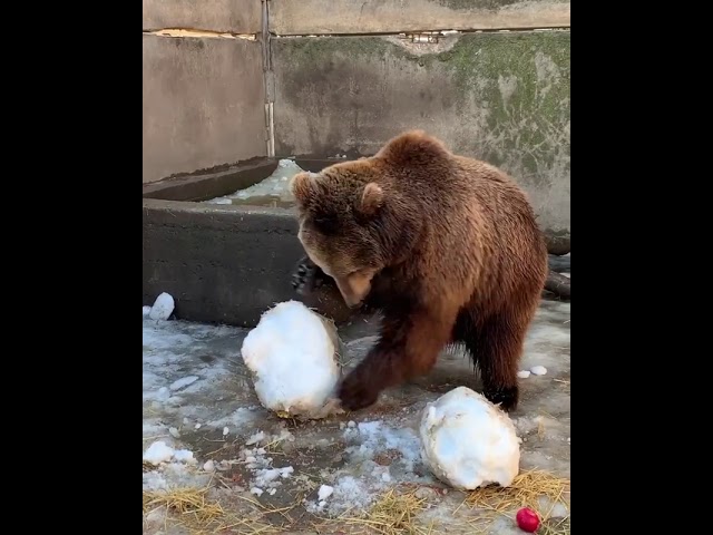 Снегу, "внезапно" выпавшему в Украине в феврале, радуются не только люди, но и животные. Так, в мелитопольском зоопарке медведь Балу, увидев подаренного ему работниками зоопарка снеговика, сразу же с радостью набросился на него и решил... съесть.