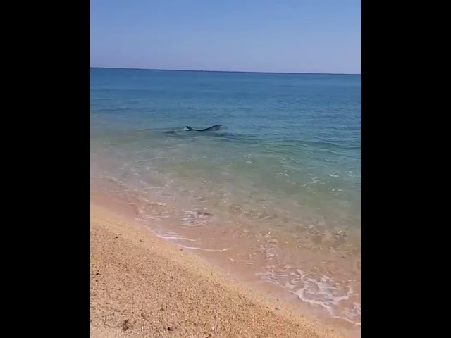 На Арабатской стрелке в Азовском море дельфины приплыли к самому берегу, где резвились и отдыхали, не обращая внимания на находящихся рядом людей, "Голос Запорожья".
