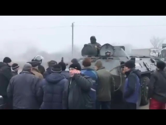 "Видеозапись, распространяемая в социальных сетях, показывает, что местные жители протестуют против прибытия эвакуированных, блокируют дороги и сталкиваются с полицией".