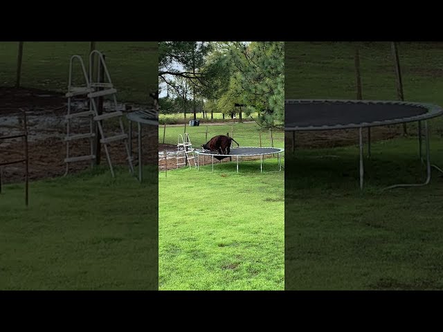 На другом видео настроение пользователям подняла корова, которая каким-то чудом залезла на батут. Зачем она туда взобралась - остается загадкой. Но закончилось приключение для буренки не прыжками, а порванным покрытием. Роликом поделилась хозяйка животного по кличке Типпи - жительница американского города Уиллс Пойнт.