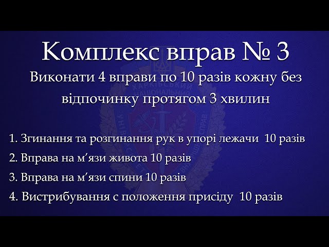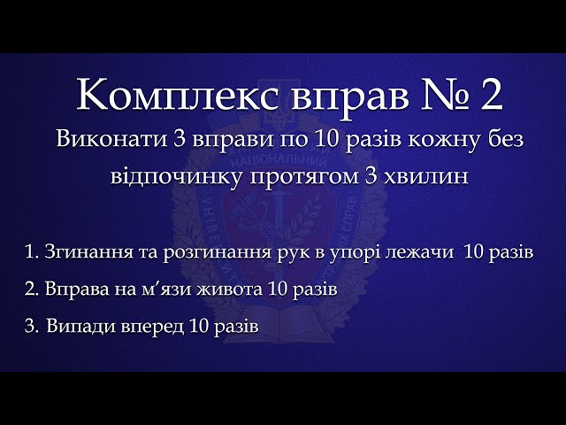 В ХНУВД сняли семь комплексов упражнений и одну разминку, которую нужно делать перед тренировкой. Посмотреть их можно на youtube-канале университета.