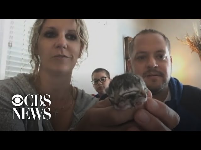 Ветеринары не уверены, что малыш выживет. Но Кайла говорит, что хотела бы оставить котенка у себя и вырастить его. Женщина уверяет, что вовсю мяукает и хорошо кушает. И вообще он довольно "бодрый", хотя еще не может поддерживать слишком тяжелую для его тельца голову.