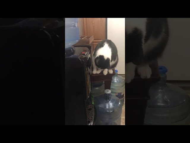 Двухлетний кот Майло из Нью-Брансуика в Канаде решил попить воды из кулера. Кот внимательно посмотрел, что делает хозяин, дабы набрать воды, а потом – запрыгнул на устройство и стал усердно давить на кнопку. Вода зажурчала, а кот наклонился, чтобы посмотреть, как она льется. Убедившись, что все получилось, Майло спрыгнул вниз, но попить так и не смог: вода утекла в поддон, ведь стакана не было на месте. Майло несколько раз повторил процедуру, но так и не понял, куда девается жидкость. Видео с проделками кота появилось на YouTube.