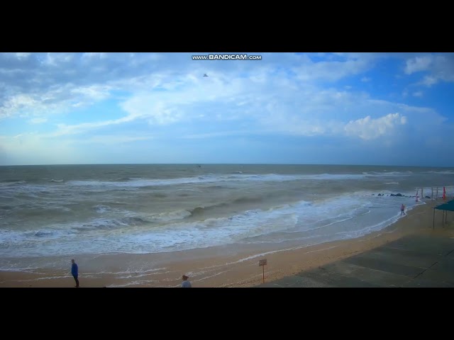 В результате шторма, Ria-M.Tv, волны в море настолько сильные, что линия прибоя покрыта хлопьями пены, а море стало коричневого цвета. Несмотря на то, что вода довольно-таки теплая – 24 градуса – желающих окунуться в бурлящую воду практически нет. При этом от пляжей почти ничего не осталось, вода вплотную подобралась к заборам и прибрежным строения, а волнорезы практически скрылись под водой. На Федотовой косе вдоль береговой линии образовались лагуны.