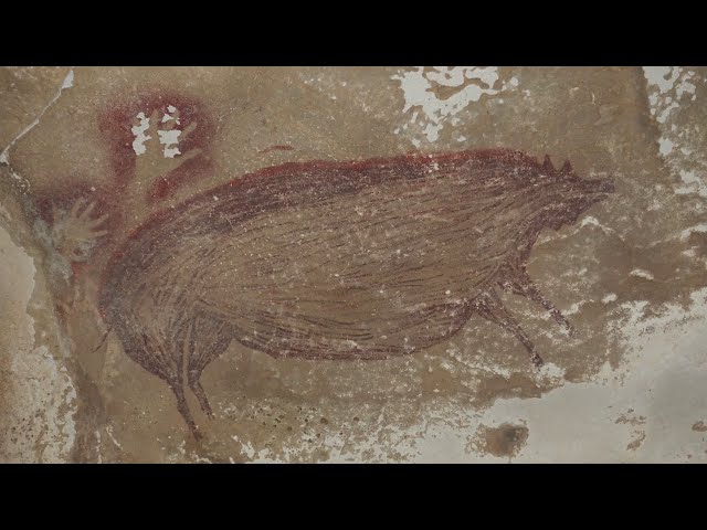 Самый старый из датированных наскальных рисунков, возраст которого составляет не менее 43 тысяч 900 лет, представляла собой изображение гибридов человека и животных, охотящихся на сулавесских бородавчатых свиней и карликовых коров, обнаруженных той же исследовательской группой в близлежащей известняковой пещере.