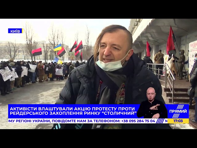 "Уже прошли суды, которые арестовали все счета подставных компаний. Сейчас вопрос передачи в законную собственность. Собственно поэтому на рынке "Столичный" мы проводим информационную блокаду уже 4-ю неделю и собственно поэтому мы здесь" – заявил Юрий Гуренко, руководитель "Правого сектора", г. Киеве.
