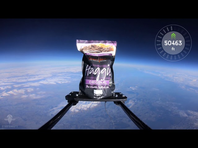 С запуском хаггиса при помощи зонда помогла компания Stratonauts UK, которая занимается космическими запусками.