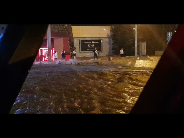 По данным гидрометцентра, в городе за час выпал 31 мм осадков. В связи с непогодой коммунальные службы города перешли в режим круглосуточного дежурства. На улицах работали 26 единиц спецтехники и 68 сотрудников КП "Городские дороги". Дорожники откачивают воду на особо проблемных участках и оперативно прочищают дождеприемники, которые забиваются мусором, который наносят ливневые потоки.