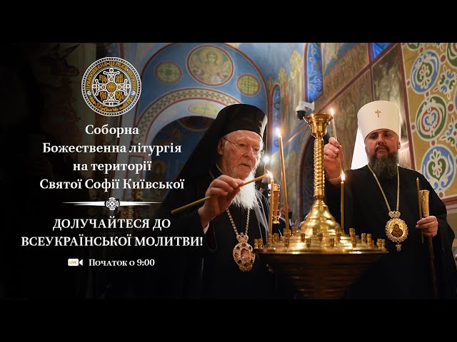 В Соборе святой Софии в Киеве проходит соборная Божественная литургия, которую возглавляет прибывший в Украину Вселенский патриарх Варфоломей и предстоятель Православной церкви Украины Епифаний. Трансляция ведется на канале .