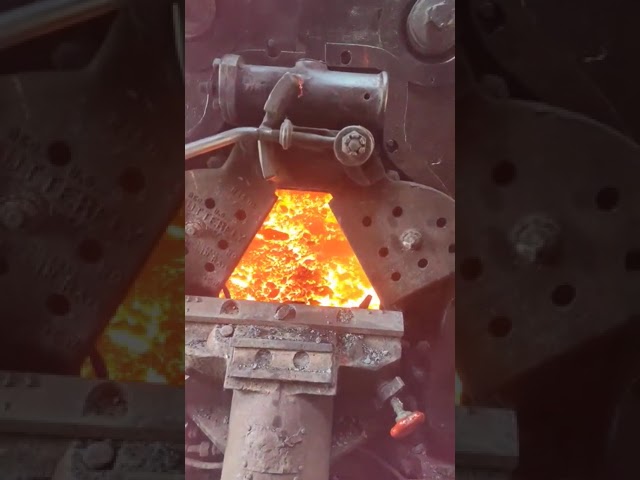 Декапод оснащен пятью парами приводных колес и одной парой в виде тележки впереди. Паровоз обильно выпускает дым и пар, движение сопровождается громким гудком.