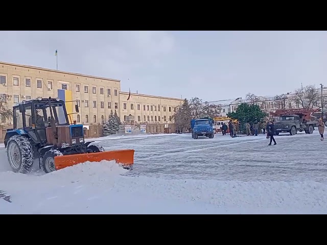 Интернет-СМИ "Златополь" сообщает, что коммунальщики уже убирают сломанную елку, а также расчищают главную площадь города от снега.