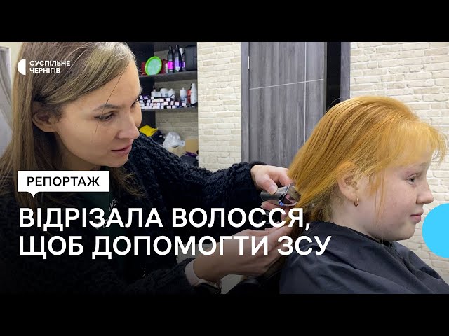 Девятилетняя девочка решила впервые в жизни состричь волосы ради помощи военным на бахмутском направлении. Фото: Суспільне Чернігів