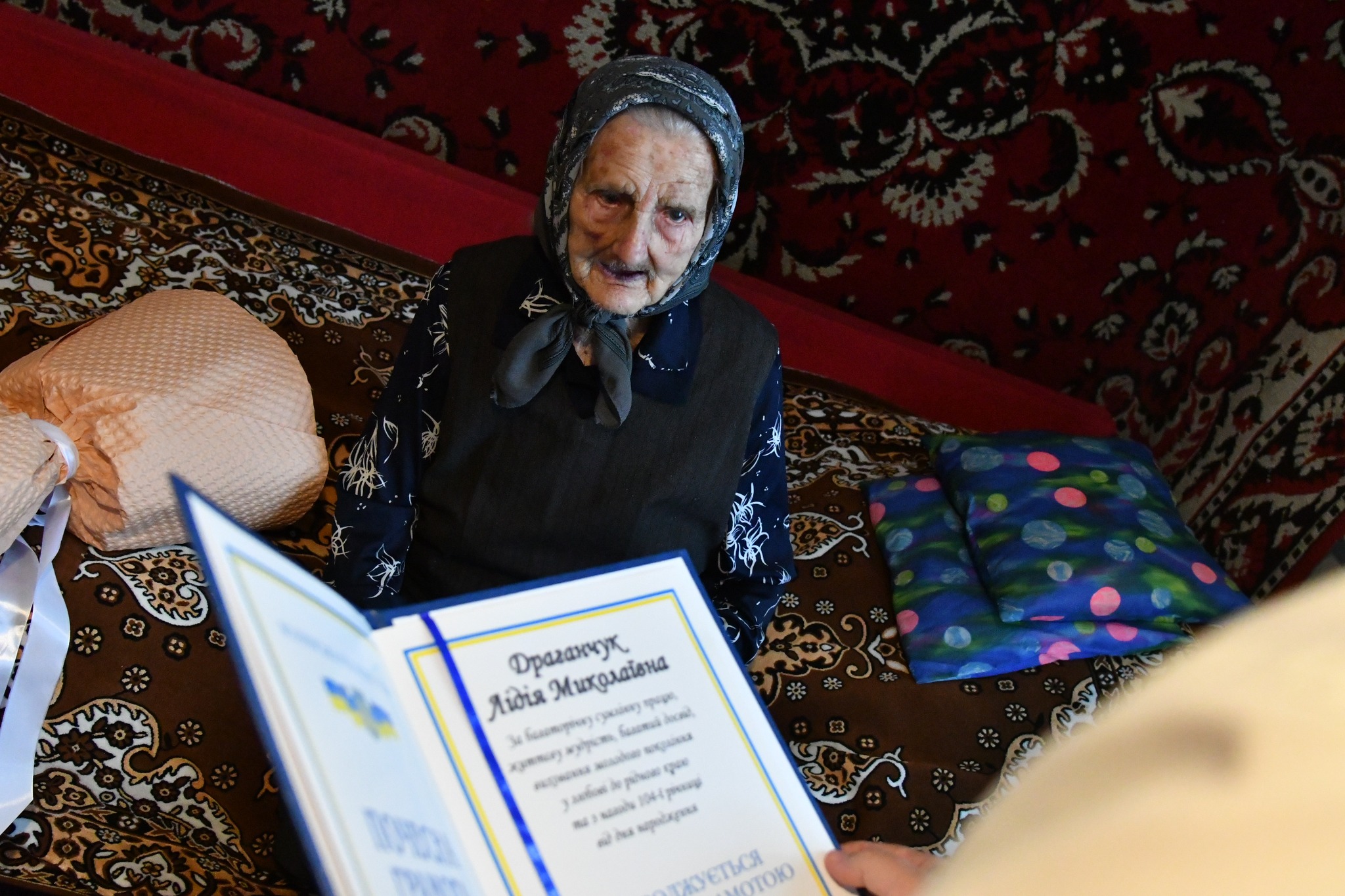 Лидия Драганчук из Волынской области в сентябре отметила 104-летие. Всю жизнь она прожила в родном селе, много работала, вырастила троих детей. Фото: ФБ Волынский облсовет