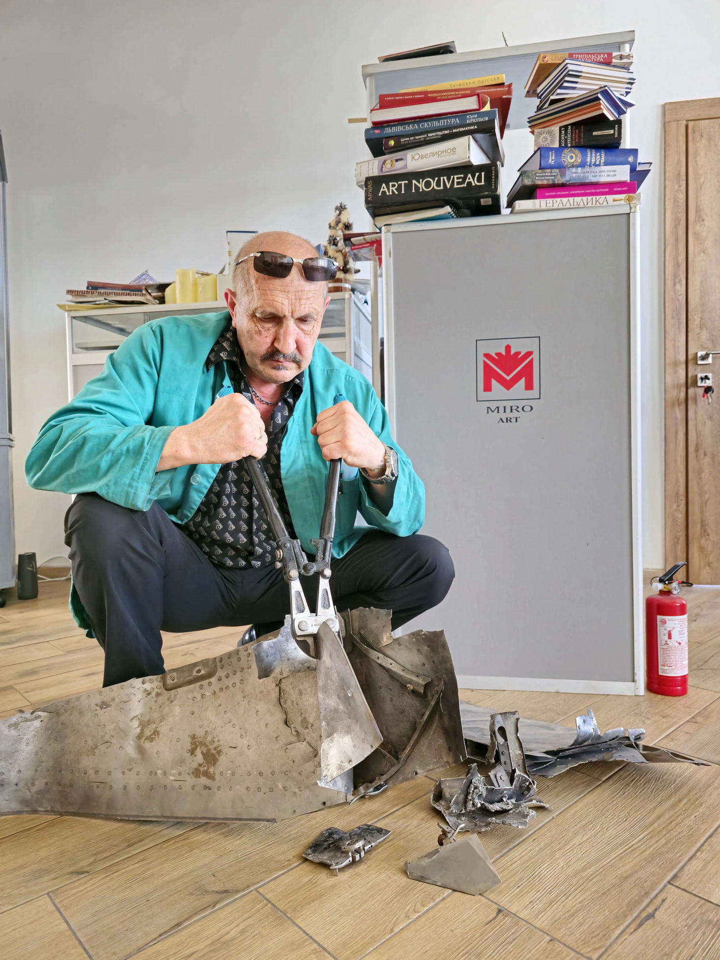 И демонстрирует «Цветок папоротника» - скульптуру, которую собственноручно изготовил из титана, золота и эмали. Титановые обломки вражеской ракеты стали основой этого удивительного изделия.
