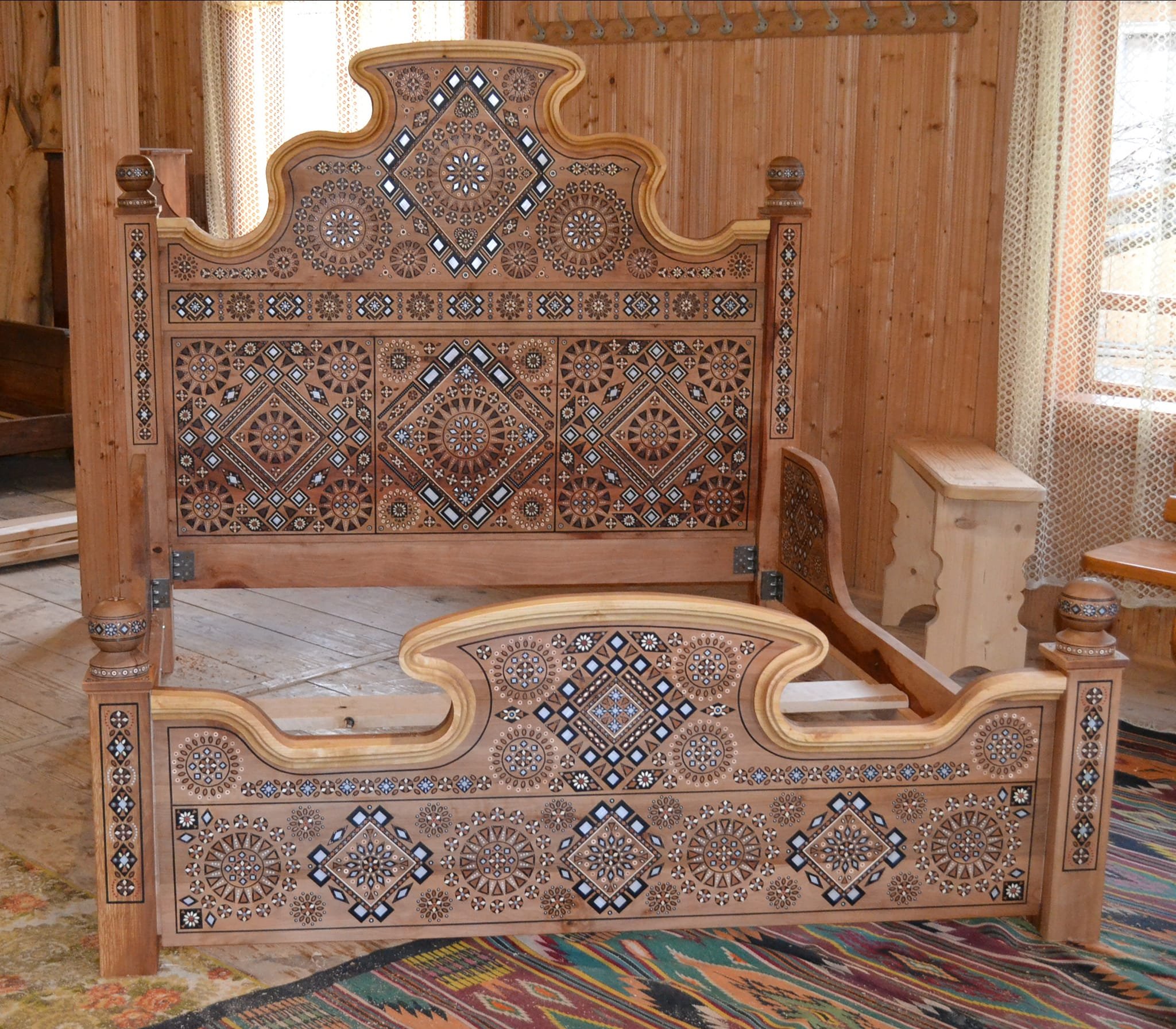 Двуспальная инкрустированная кровать за 8 тысяч долларов США, изготовленная по заказу. Фото: instagram.com/semeniv_dynasty/