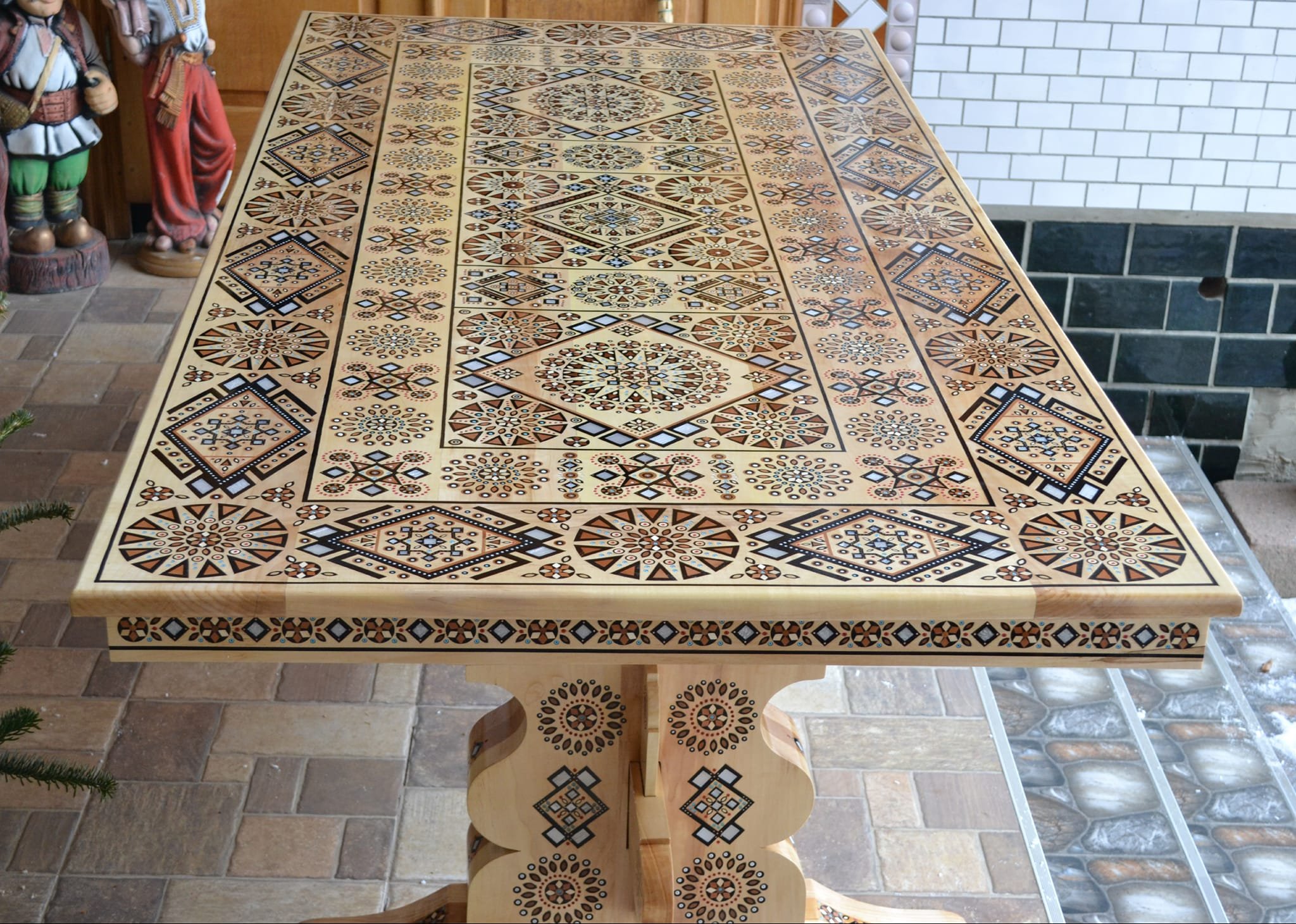 Инкрустация требует ювелирной точности, да еще и знания геометрии, поскольку каждую деталь вставляют в вырезанное вручную отверстие, идеально подогнанное под ее размер. Без капли клея или лака!