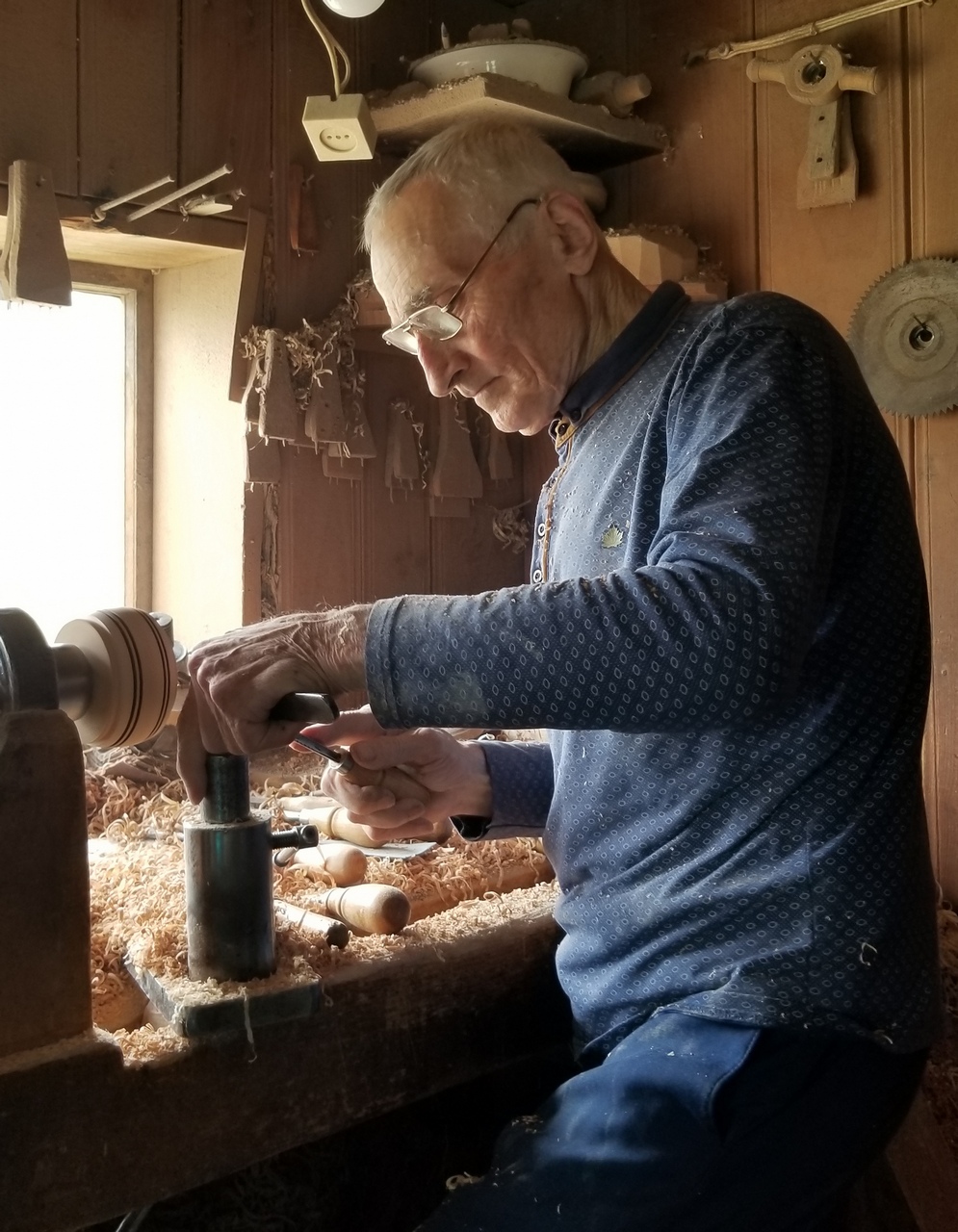 За 40 лет мастер изготовил более тысячи изделий. Использует древесину только твердых пород: лучше всего – груша, но подходят и черешня, и орех. Свои работы украшает вставками из искусственного перламутра, металла, бисера, древесины разных цветов.