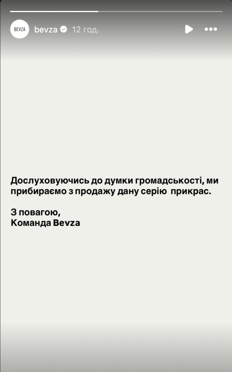 Украинский модный бренд Bevza заявил, что отказывается от выпуска набора елочных украшений «Пять колосьев», название которого совпало с народным обозначением репрессивного советского постановления, предшествовавшего Голодомору 1932–1933 годов. Об этом в соцсетях сообщила историкиня Татьяна Швыдченко.