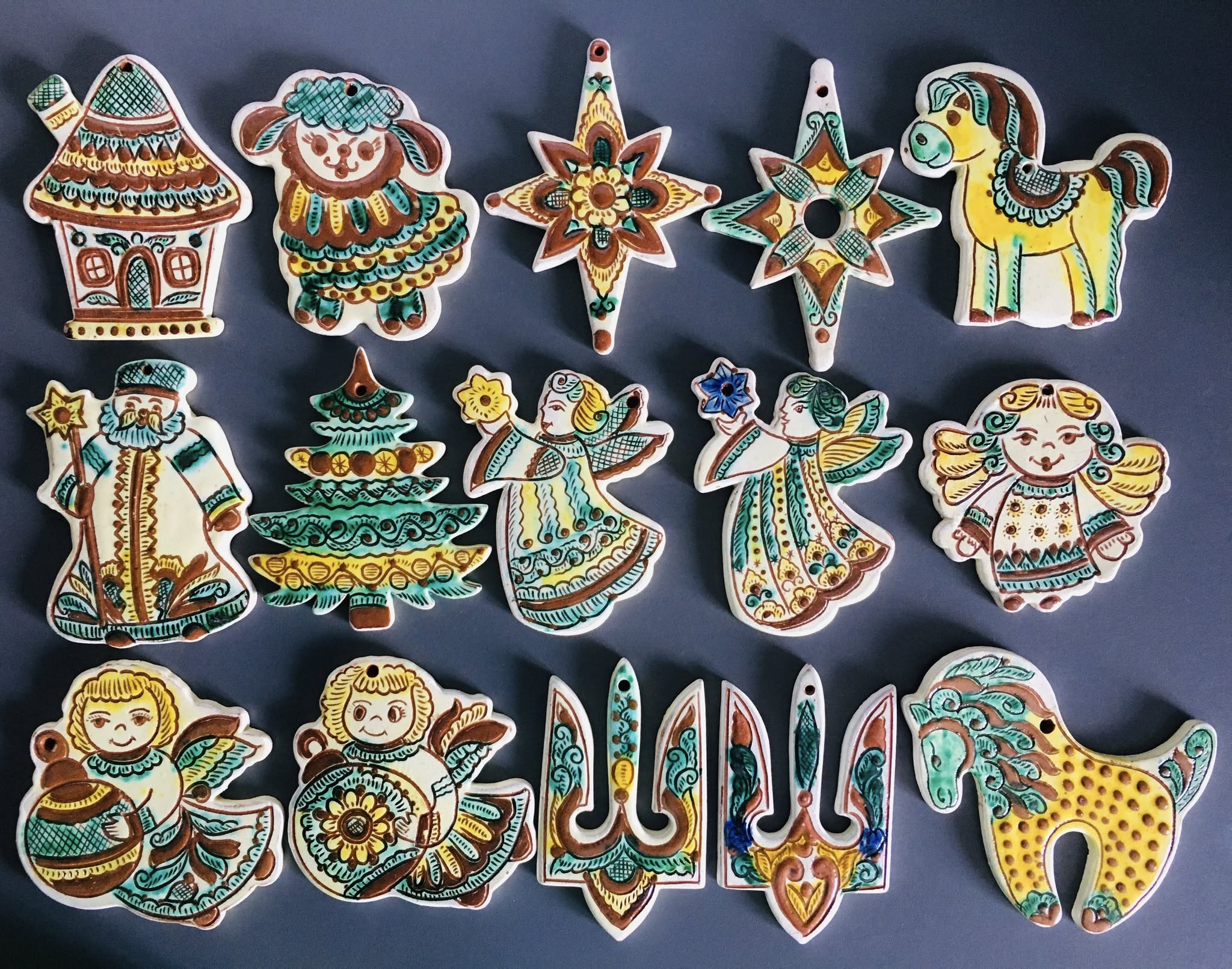 Керамических барашков, птичек, елок, белочек, ангелочков расписывают в разных стилях. В городке Косов, что на Прикарпатье, известном своими традиционными ремеслами, изготовлением елочных керамических игрушек занимается каждый второй местный гончар. Это ручная работа с обязательным обжигом, росписью в цветах и орнаментах в стиле косовской керамики.