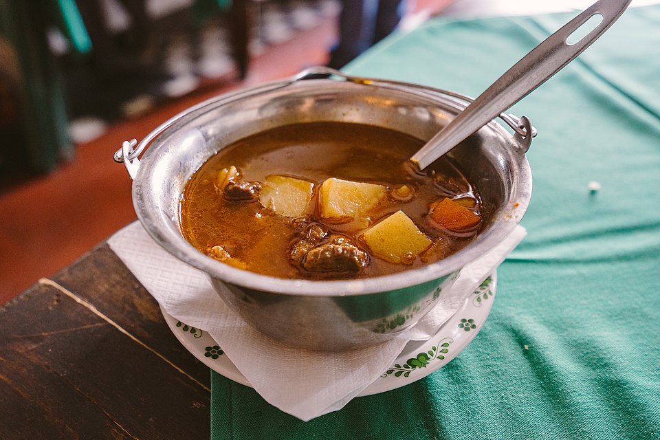 Гуляш-суп, или, по-венгерски, гуляшлевеш (gulyás в переводе с венгерского языка «пастух», а leves «суп») готовили на огне. И ключевой ингредиент этого блюда не мясо или картофель и бульон, а паприка, придающая ему характерный цвет и вкус.
