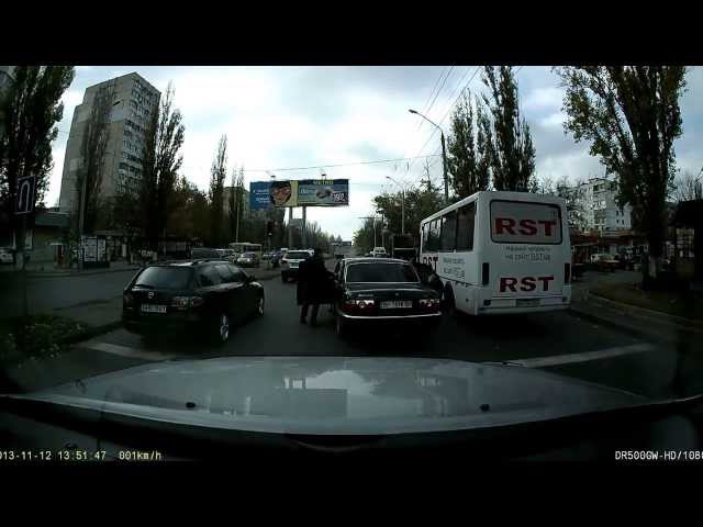 Водитель маршрутки, внезапно остановившись перед перекрестком, выскочил из автобуса и набросился на водителя автомобиля "Волга".