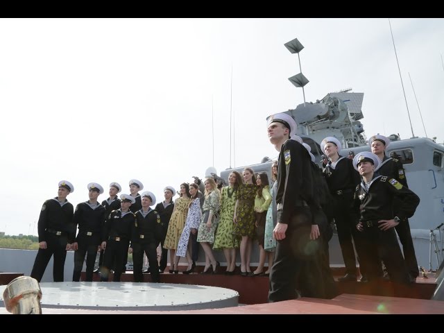 Девочкам, кстати, приходилось сложно. Подолы их легких платьев то и дело поднимались от порывов сильного ветра. Возможно, курсантов это и радовало, а вот самих моделей и фотографов врядли – ведь тогда приходилось снимать по несколько дублей.