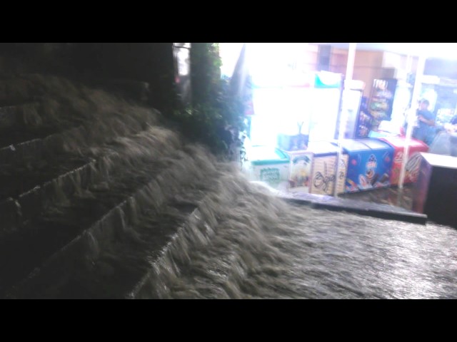 Кроме того, ливень буквально за полчаса вызвал настоящий потоп на Лонжероне. Дождевая вода шумным водопадом текла по лестнице, ведущей к морю. Из-за чего отдыхающим было сложно подняться с пляжа в город. Чтобы перебраться на другую сторону дороги, людям приходится идти до ближайшего наземного перехода.