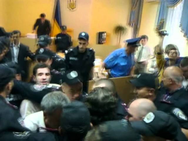 Тем временем под судом произошла стычка между "тимошенковцами" и их противниками. Сначала активисты из конкурирующих лагерей обдали друг друга водой, после чего в ход пошли кулаки. В результате победила милиция, которая растащила забияк в разные стороны.