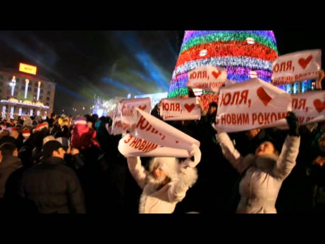 В новогоднюю ночь на Майдане Незалежности возле главной елки страны сторонники поздравили экс-премьера Юлию Тимошенко с Новым годом.