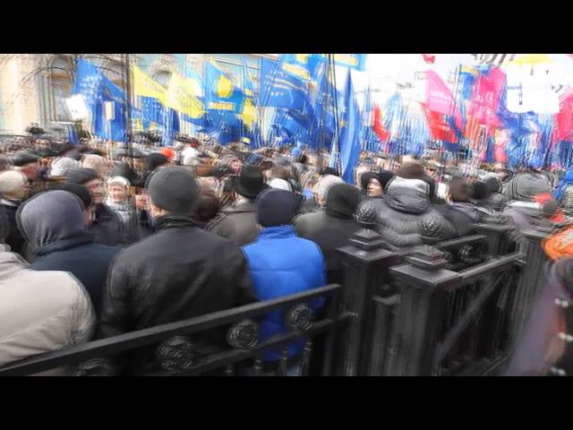 Митинги друг друга перекрикивают. В то же время со стороны оппозиционного митинга в три ряда стоят силовики. Возле входа в раду выстроилось около 0-30 правоохранителей. Пока все происходит мирно. Однако кто-то включил сирену, чтобы заглушить оба митинга