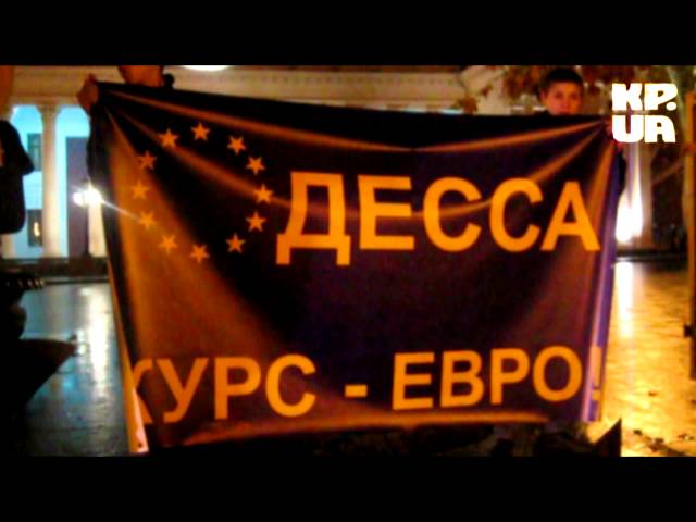 Акция в поддержку европейского курса Украины собрала на Думской площади в Одессе больше 200 человек. В основном это были люди среднего возраста, они держали в руках национальные флаги Украины и флажки с символикой Евросоюза. Из колонок играла музыка, а активисты собирали подписи в поддержку договора об ассоциации.