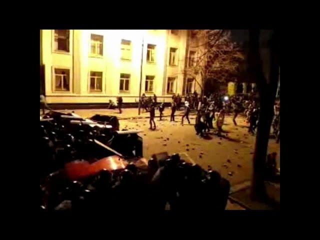 Более двух часов продолжалось противостояние между группой молодых людей и правоохранителями. Беспрерывно взрывались петарды и шашки. После очередной атаки слезоточивым газом "Беркуту" удалось вытеснить с Банковой активистов.