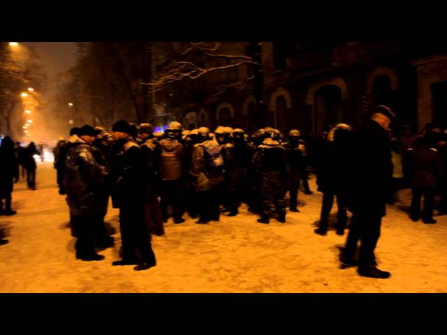 Напротив них находится около 200 протестующих. Они кричат "Ганьба" и время от времени пытаются прорваться через милицейский кордон. Пока обстановка спокойная.