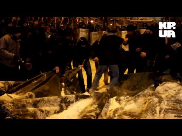 Милиция продолжает теснить митингующих от палаток. Интересно, что разбирают баррикады на освобожденных участках парни в спортивных костюмах (в народе их называют "титушками"). Правоохранители почему-то пропускают их к заграждениям из лавочек и палаткам. Из-за этого возникают стычки.