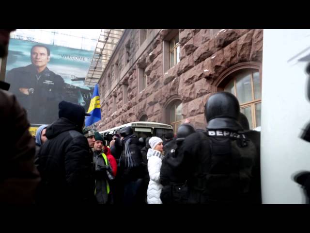 1:54. "Беркут" прорвал баррикады и вошел на Майдан. Митингующие расступились.