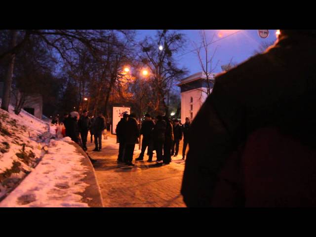 11.01. Десятки автобусов с табличками "Сохраним Украину" на каждом паркуются около метро "Академгородок". Людей формируют в группы и постепенно вывозят на метро в центр города.