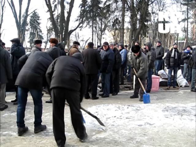 26 января напротив здания областной государственной администрации появились баррикады из мешков со снегом и автомобильных шин. Там находятся несколько сотен человек. А милиция тем временем продолжает охранять все входы и выход в обладминистрацию.