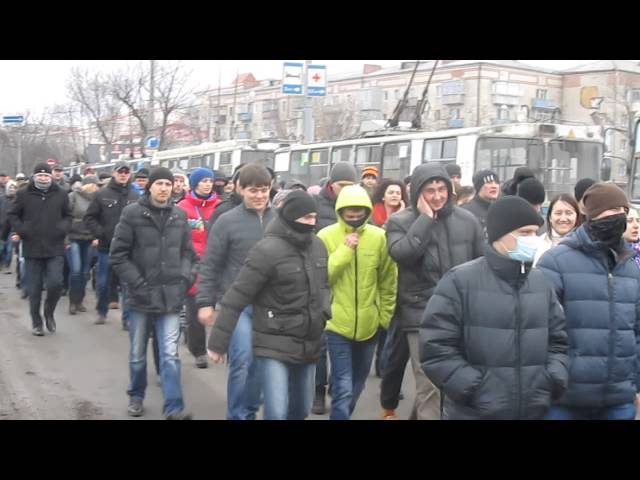 Движение регулируют сотрудники ГАИ. Активисты призывают горожан выходить на Майдан и ехать в Киев. Водители сигналят.