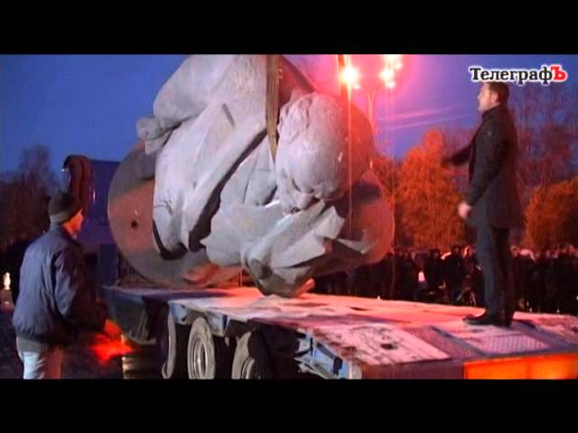 После долгих приготовлений, скульптуру Ленина сняли с постамента с помощью автокрана. Ее положили рядом лицом вниз. Затем его погрузили на огромный прицеп грузовика и увезли.