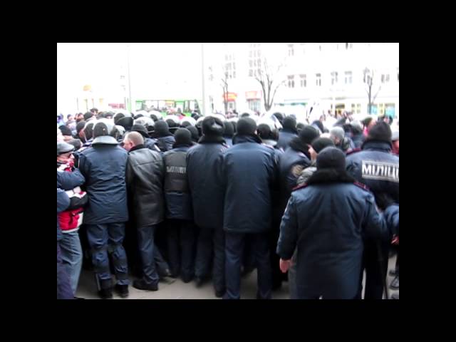 Но Кернеса заглушили криками "Россия! Харьков! Севастополь!". Мэра оттеснили от эпицентра событий, не помогла даже милиция, сопровождавшая его, он вернулся в здание горисполкома. Корреспондент "Комсомольской правды в Украине" передает с места событий, что активисты ведут себя довольно агрессивно. Они сожгли флаг Украинской повстанческой армии и настаивают на том, чтобы над мэрией Харькова висело знамя Российской Федерации.