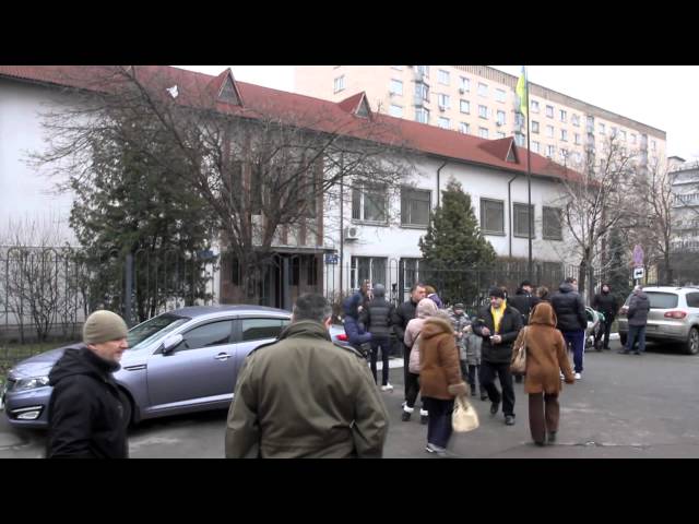 Военкомат Оболонского района Киева. Вокруг здания суетно, как во время призыва. Всего я насчитал около 70 человек. Есть и девушки, пришедшие с мужьями и своими молодыми людьми. Одна пара с коляской, в которой попискивает милый малыш. Парни и мужчины общаются, разбившись на группки по 3-5 человек. Есть тут и совсем молодые ребята, но большинство – от 25 до 40 лет. Многие курят, нервно обсуждая ситуацию в стране. Почти все говорят на русском.