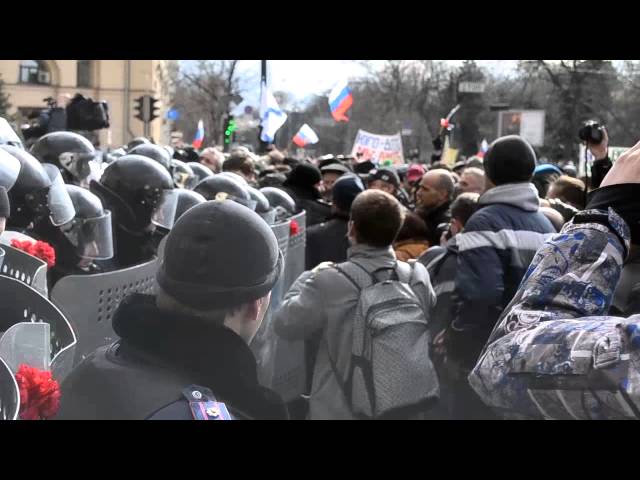 Приверженцы КПУ растянули на площади Свободы российский флаг и двинулись к зданию ХОГА. Кгда около тысячи человек подошли близко к милицейскому оцеплению, возникла потасовка. Милиции удалось оттеснить митингующих. В суматохе кто-то распылил слезоточивый газ. Толпа пока что не расходится, хоть милиции и удалось оттеснить ее от здания. Митинг решил направиться к Генконсульству РФ.
