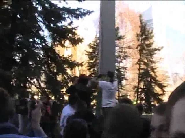 Здесь митингующих ожидало столь же солидное оцепление. Штурмовать не решились. Впрочем, как и ходить к прокуратуре, ожидая тот же результат. Отправились к РОВД Ворошиловского района Донецка. Этот райотдел милиции впал в немилость у протестующих поскольку именно здесь, по их данным, держали активистов, задержанных за беспорядки 13 марта (тогда погиб активист "Свободы" Дмитрий Чернявский – прим.авт.). Активистов по требованию толпы выпустили, предварительно оправдав это решением суда.